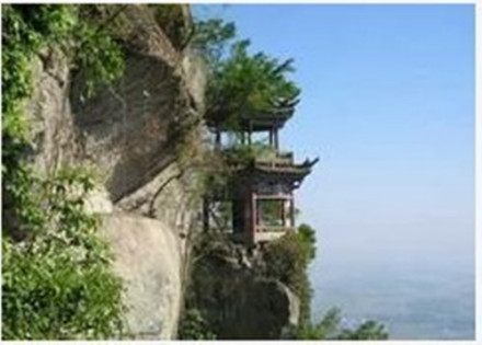 走完棧道,越過密密叢林,可到“聽松軒”。這里松林如海,山風吹拂,發(fā)出陣陣濤聲,象平地揚沙,象幽谷夜雨,象大海恕潮,象深山虎嘯……前人有詩為這一情景寫照:“倏然一榻臥山高,夢熟旋聞眾虎嗥,起視千林搖曳動,大風吹激怒于潮!
