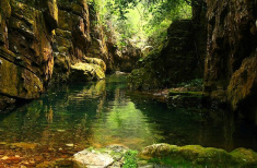 在虹橋之上約100余米。峽長40米,兩旁峭壁高聳,中間一條小路,僅容1人通過。峽中習習生風,仰首只見藍天一線,因此又叫“一線天”。民間傳說,有緣份的人往往可以在在這里和神仙相會。長峽南端入口處石壁上,刻有寬能法師題寫的“神仙峽”三個大字。原來,會仙峽又叫神仙峽。