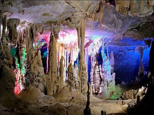 此洞分為4個(gè)大殿堂,輝煌瑰麗,多姿多彩,讓人看了留連忘返。其中最為壯觀的是那個(gè)100多米高,幾百米寬、1000多米長的大殿堂內(nèi),幾十個(gè)70~80米高、3~5米直徑的鐘乳石柱,構(gòu)成龐大的石塔群,挺拔高聳,雄偉壯麗,讓人驚嘆不已。加上洞中霧氣繚繞,變幻無窮,更使這個(gè)巍巍景觀顯得詭秘多姿。這些巨大的鐘乳石塔,是經(jīng)過幾億年巖溶發(fā)育的結(jié)晶,其中最大的石筍需十人方能合圍,最高的石柱達(dá)39米,實(shí)屬“天下之最”。