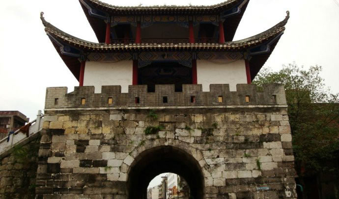 四牌樓,位于宜州區(qū)一中東側,建于乾隆二十五年,時稱“會魁樓”,又稱“四牌樓”。此樓位于十字路口,形成東西南北四個門洞,內(nèi)外相通。四牌樓樓高三層,一樓全用大型細鑿條石砌成,呈四方形,工藝精巧。邊長11.5米,四面拱門各高3.9米,寬3.5米。二三樓為木質結構的重檐樓閣,紅漆圓柱,飛彩流丹,古樸莊重。“文革”中二三樓被拆毀,只存有一樓拱洞石門,樓上建筑及額匾碑刻已不復存在。