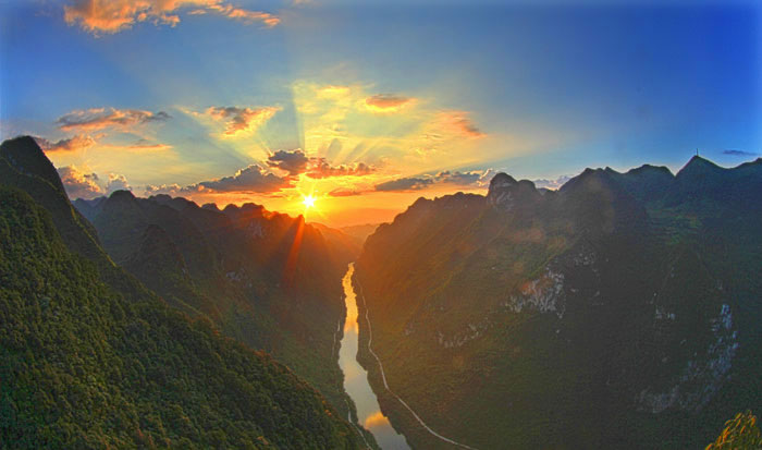 旅游資源。天峨是國(guó)家銅鼓文化生態(tài)保護(hù)實(shí)驗(yàn)區(qū)的核心區(qū)(天峨、南丹、東蘭)縣份之一,共有壯族螞拐節(jié)、壯族銅鼓習(xí)俗兩項(xiàng)國(guó)家非物質(zhì)文化遺產(chǎn),有壯族八仙、壯族螞拐舞、壯族筒噔藝術(shù)等5項(xiàng)自治區(qū)非物質(zhì)文化遺產(chǎn)。境內(nèi)有國(guó)家4A級(jí)景區(qū)1個(gè)(龍灘大峽谷國(guó)家森林公園)、國(guó)家3A級(jí)景區(qū)2個(gè)(龍灘水電站、川洞河燕子湖景區(qū)),自治區(qū)生態(tài)旅游示范區(qū)1個(gè),四星級(jí)鄉(xiāng)村旅游區(qū)5家(山旮旯生態(tài)農(nóng)業(yè)旅游區(qū)、六美生態(tài)農(nóng)業(yè)休閑區(qū)、川洞河燕子湖鄉(xiāng)村旅游區(qū)、雙龍瀑布·金花茶園、板凳老家鄉(xiāng)村旅游區(qū)),星級(jí)農(nóng)家樂(lè)19家,星級(jí)酒店4家,基本形成“一山(大山)一洞(川洞)一峽谷(龍灘大峽谷),一河(紅水河)一湖(龍灘天湖)一電站(龍灘水電站),一花(油桐花)一橋(仙人橋)一文化(螞拐文化)”的旅游發(fā)展格局,逐步成為生態(tài)休閑旅游的理想圣地。