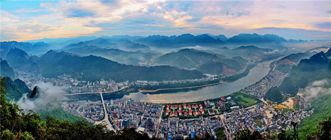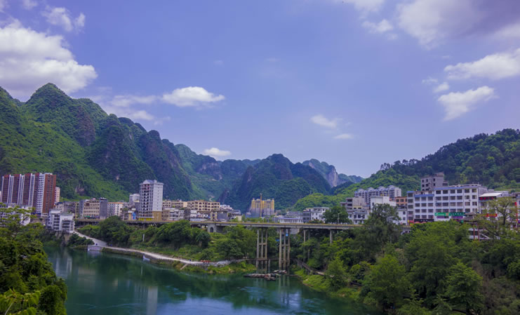 天峨縣,隸屬?gòu)V西壯族自治區(qū)河池市,位于廣西壯族自治區(qū)西北部,紅水河上游?h境東西長(zhǎng)約77千米,南北寬約95千米?偯娣e3196平方千米。天峨縣是國(guó)家、廣西林業(yè)重點(diǎn)縣,全縣森林面積22.9萬(wàn)公頃,森林覆蓋率達(dá)82.6%,素有“森林王國(guó)”“綠色寶庫(kù)”之稱,野生植動(dòng)物資源種類繁多;紅水河流經(jīng)縣境112千米,水資源占紅水河流域總蘊(yùn)藏量45%。全縣轄2鎮(zhèn)7鄉(xiāng),其中瑤族鄉(xiāng)1個(gè),居住著壯、漢、瑤、侗、苗、毛南、布依、仫佬、水等20個(gè)民族。天峨縣常住人口為143155人。