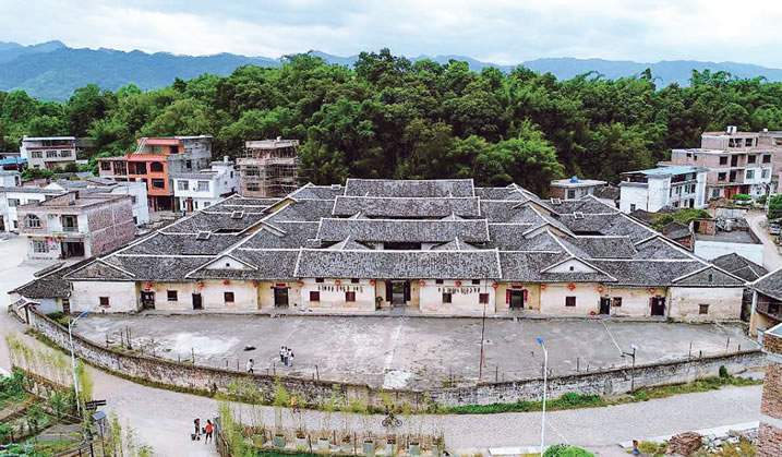 賀州江氏客家圍屋,位于廣西賀州市八步區(qū)蓮塘鎮(zhèn)仁沖村,建于清代,已有200多年歷史。圍屋建筑為方形對(duì)稱結(jié)構(gòu),四周有3米高墻與外界相隔,屋宇、廳堂、房井布局合理,廳與廊相通,廊與房相接,錯(cuò)落有致。屋檐、回廊、屏風(fēng)、梁柱等設(shè)計(jì)精致,有典型的客家建筑文化藝術(shù)風(fēng)格。 2019年,入選第八批全國(guó)重點(diǎn)文物保護(hù)單位。