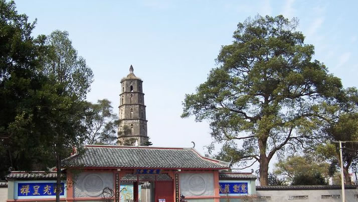 瑞光塔位于富川瑤族自治縣縣城南郊約500米富江西畔的急轉彎處。因塔內曾供有陰刻雕觀音像,俗稱觀音塔、觀音閣。 塔為7層樓閣式六角形磚塔,高28米,塔基埋深4.8米,塔尖有重達400公斤的銅剎蓋頂。各層皆有一門,依次順時針變化門向。頂層六面有窗。塔內有螺旋式磚梯78級,可直達頂層。登塔遠眺,可觀“富川八景”中的“三景”:“富水奔濤”、“層巒聳翠”和“山泉飛瀑”。塔下林木成蔭,玉泉清冽,環(huán)境十分幽雅。