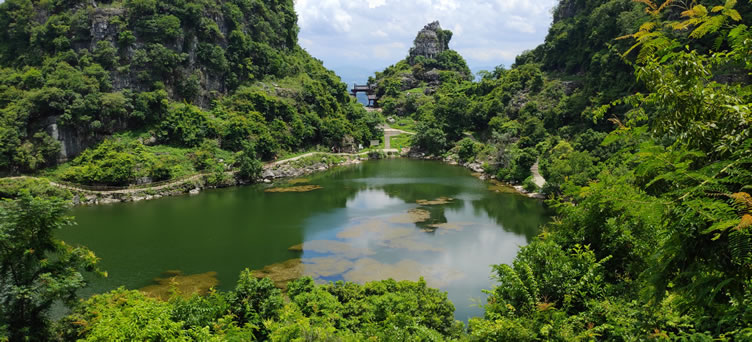“八仙天池”(又稱:“八仙山”、“八仙寨”),是全國三個天池之一,1988年經自治人民政府批準,列為自治區(qū)級風景名勝開發(fā)保護區(qū)。距武宣鎮(zhèn)6千米的大山峽村八仙山。山體呈圓形,面積2平方千米,山體313米高程,四周環(huán)列八座山峰,在高出地面127米的山腰中有一池天然碧水,似“八仙托玉盤”,故稱:“八仙天池”。天池長約150米,寬100米,水深10米。又名:“八仙潭、龍?zhí)丁⑾珊、神秘?rdquo;。八仙山四周空蕩,雨不盈,旱不闊,水清無塵,味甘可飲。