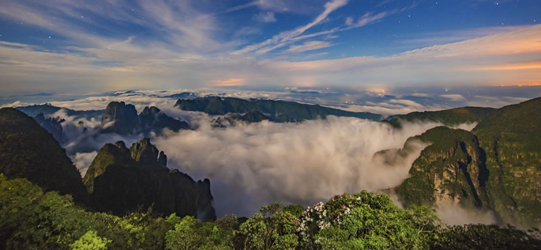老虎潭峽谷位于金秀圣堂山風(fēng)景區(qū)的西北面,峽谷的中心地帶——老虎潭全長約400米,最寬的約30米,最窄的漢3米。穿過老虎潭,山崖有實(shí)心竹,棉木、石板木、白豆杉、香化木、羅漢松、福建柏等和各種各樣的杜鵑花。