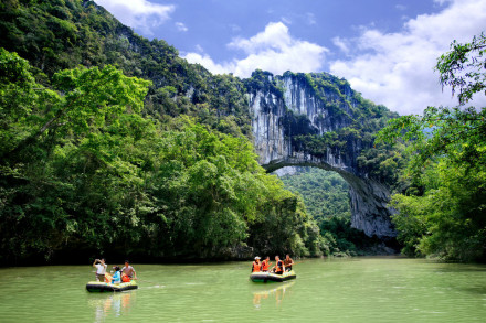 第三天:乘車前往布柳河,乘竹筏泛舟布柳河風光,觀賞世界上最大最壯觀的仙人橋奇景。返回縣城。住:同上