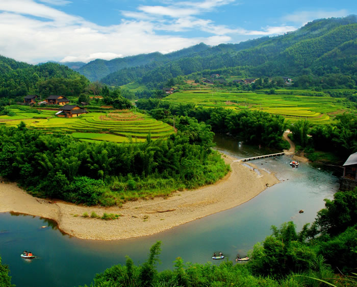大洲生態(tài)農(nóng)業(yè)旅游區(qū),2005年12月由國家旅游局命名為"全國農(nóng)業(yè)旅游示范點(diǎn)"。位于融安縣長安鎮(zhèn)大洲村,與縣城僅一水之隔,面積約2.2平方千米。大洲四面環(huán)水、島上竹林成片、綠樹成蔭、瓜果飄香,如一顆明珠鑲嵌在融江中。洲上地勢平坦,土壤肥沃,耕地面積700畝,素以農(nóng)業(yè)為主,是縣城的無公害蔬菜生產(chǎn)基地,其中以大洲頭菜、蘿卜、涼薯等土特產(chǎn)名揚(yáng)區(qū)內(nèi)外。洲上樹木蔥郁,古木參天,農(nóng)舍掩映,田園風(fēng)光優(yōu)美,兩岸翠竹連綿,岸邊百畝天然草坪與清澈寬闊的江水組成一幅美麗的畫面。景區(qū)修建了2000多米環(huán)洲游覽步道、小廣場、游客中心、碼頭、涼亭等一批公共設(shè)施,開放大洲浮橋、千年古榕、三友亭、瓜果長廊、無公害頭菜示范園、柚子園、樟樹王等10個景點(diǎn)。是集農(nóng)業(yè)觀光、休閑度假、無公害農(nóng)產(chǎn)品生產(chǎn)、教育、培訓(xùn)為一體的農(nóng)業(yè)旅游園區(qū)。