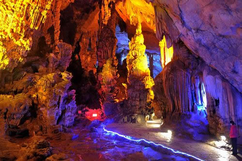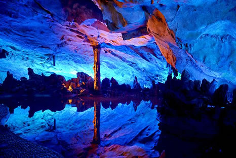 “桂林山水甲天下,蘆笛美景堪最佳!碧J笛巖是桂林山水一顆璀璨的明珠,蘆笛巖位于光明山南側(cè)山腰,洞深240米,游程近500米,是一處景致高度集中、景物極盡造化的神奇游覽佳境。在這個奇妙的巖洞中,琳瑯滿目的鐘乳石、石筍、石柱、石幔、石花擬人狀物,惟妙惟肖,構(gòu)成了三十多處景觀,有“紅羅寶帳”、“高峽飛瀑”、“盤龍寶塔”、“原始森林”、“簾外云山”、“水晶宮”等,可謂移步成景,步移景換。整個巖洞猶如一座用寶石、珊瑚、翡翠雕砌而成的宏偉、壯麗的地下宮殿。