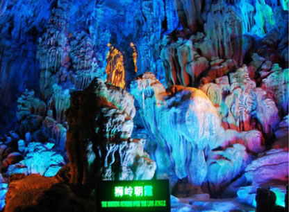 洞內(nèi)有大量奇麓多姿、玲瓏剔透的石筍、石乳、石柱、石幔、石花,琳瑯滿目,組成了獅嶺朝霞、紅羅寶帳、盤龍寶塔、原始森林、水晶宮、花果山等景觀,令游客目不暇接,如同仙境,被譽(yù)為 “ 大自然的藝術(shù)之宮 ”。