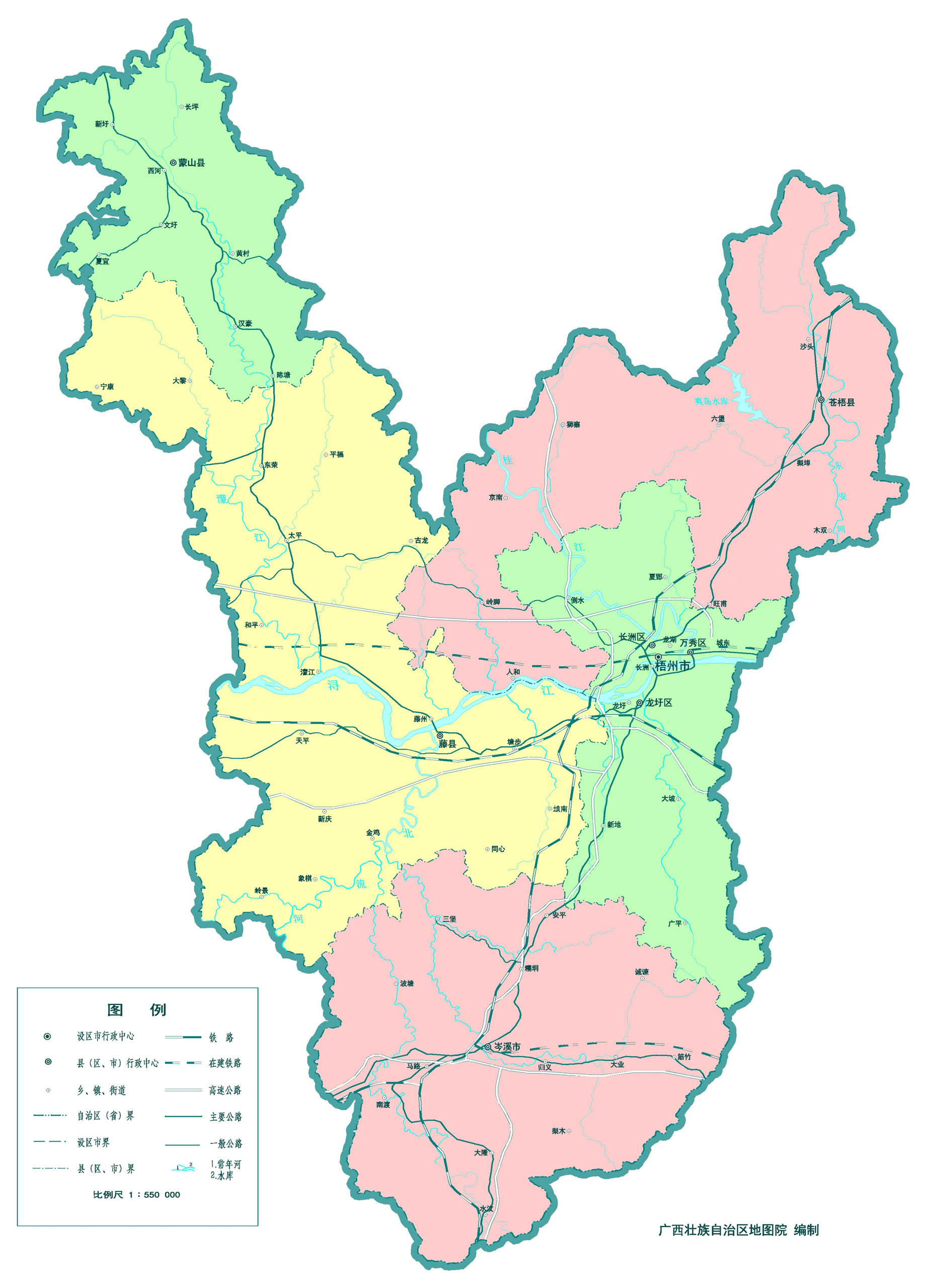 梧州市轄3個(gè)市轄區(qū)、3個(gè)縣、代管1個(gè)縣級(jí)市: