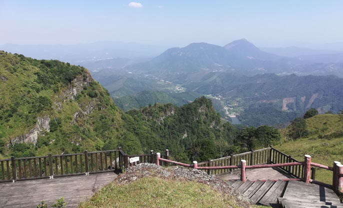 天龍頂國家山地公園位于岑溪市南渡鎮(zhèn),占地面積15平方千米。景區(qū)主峰天龍頂海拔1221米,相對高度221米,屬云開大山山脈的主峰。景區(qū)內(nèi)海拔高于1000米以上的山峰還有石豹頂、公婆頂、湖廣頂?shù)人淖椒。景區(qū)的自然資源具有多樣性,景區(qū)內(nèi)有高山湖泊、原始森林、溝壑峽谷、溪谷瀑布群、海拔1000米之上的高山草甸、海拔1200多米的丹霞山峰、延綿近數(shù)十里的斷層崖壁等等,形成了一個(gè)具有旅游觀光、休閑度假、戶外運(yùn)動等多功能的復(fù)合型景區(qū)。同時(shí),天龍頂國家山地公園也是一個(gè)純天然自然氧吧,空氣中負(fù)離子含量高達(dá)35000個(gè)/立方米。