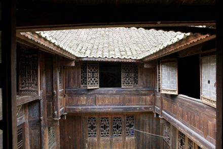 陶家院位于古城東北角,是清末木商陶明哲的住宅,為三間搭兩廂型建筑,四周?chē)唢L(fēng)火墻,天井鋪青石板,窗扇均為雕刻精美的木板花窗,上面雕有精致的鳥(niǎo)獸,其中的鏤空玲瓏木板雕鏤更為奇特,書(shū)房?jī)?nèi)有壁畫(huà),家具陳設(shè)完全,工藝精良,裝飾典雅,屋前建有門(mén)樓及防火石缸,是古城最有代表性和保存最完好的古民居建筑。