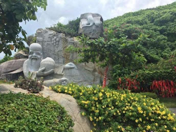 南山是座吉祥的山,在老百姓的心目中南山與長(zhǎng)壽密切相關(guān),是真正意義上的壽山。中國(guó)稱作南山的地方很多,如廣東的潮州、福建的莆田、四川的大足、陜西的西安等地都有南山。最著名的南山當(dāng)數(shù)青海東都境內(nèi)的南山,見(jiàn)于《中國(guó)名山大川辭典》(1992年,山東教育出版社)。但大小洞天所在的南山卻非常獨(dú)特;其一,這是中國(guó)最南部的山,是名副其實(shí),名正言順的南山;其二,南山大小洞天被視為南海的”洞天福地”!倍刺旄5亍笔堑兰译[居和修煉長(zhǎng)生不老的地方,也是神仙真人之治所,是理想中長(zhǎng)壽之地;其三,中國(guó)第三次、第四次人中普查結(jié)果顯示:海南的人口平均壽命最高,而三亞市的人口平均壽命為海南之首,南山又為三亞之最,現(xiàn)存86歲以上的老人達(dá)幾百人之多,可見(jiàn)這里是實(shí)實(shí)在在的福澤之地,長(zhǎng)壽之鄉(xiāng);其四,南山大小洞天一帶集中分布有能成活數(shù)千年的長(zhǎng)壽樹(shù)--被美喻為”南山不老松”的龍血樹(shù)。龍血樹(shù)屬龍舌蘭科常綠植物。白堊紀(jì)恐龍時(shí)代就已出現(xiàn),被稱為植物中的活化石,世界科教文組織列為保護(hù)樹(shù)種。中國(guó)亦定其為珍稀瀕危植物,屬國(guó)家二級(jí)重點(diǎn)保護(hù)樹(shù)種,主要分布于熱帶、亞熱帶軒區(qū)。現(xiàn)今,此樹(shù)種已瀕臨滅跡,但在三亞南山一帶卻生長(zhǎng)著三萬(wàn)株之多,主要集中于南山大小洞天旅游區(qū),樹(shù)齡逾千年的有兩千多株,最長(zhǎng)的有六千年以上。福澤之地,養(yǎng)育千年古樹(shù);神足之山,氤氖萬(wàn)古精靈。人們有足夠的理由相信,南山是長(zhǎng)壽之鄉(xiāng),”壽比南山”在這里當(dāng)之無(wú)愧!眽郾饶仙讲焕纤伞闭沁@一景區(qū)的真實(shí)寫(xiě)照。