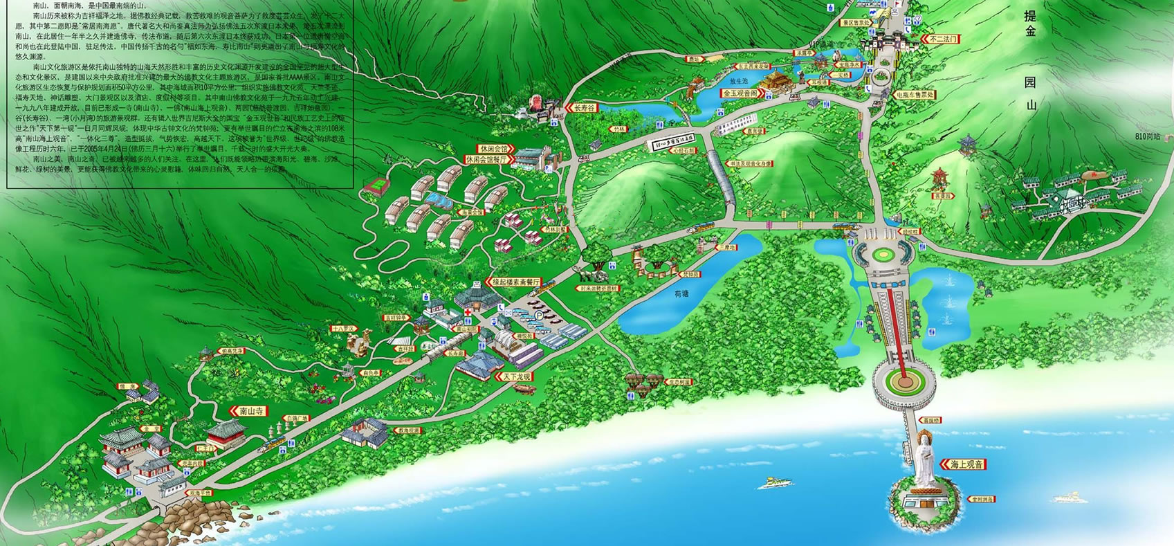 三亞南山風景區(qū)是國家旅游局確定的“中國旅游業(yè)發(fā)展優(yōu)先項目”。它位于中國唯一的熱帶濱海城市三亞市的西部,是全國罕見的超大型文化和生態(tài)旅游園區(qū)。園區(qū)規(guī)劃面積五十平方公里,其中海域面積十多平方公里,由美國紐約國際城市設(shè)計公司統(tǒng)籌規(guī)劃,美國經(jīng)濟咨詢聯(lián)合公司提供可行性報告。項目內(nèi)容策劃分別由中國佛教文化研究所、中國民俗學會、中國歷史博物館、中央民族大學、中國環(huán)境科學院、中國科學院生態(tài)中心完成。該項目是海南省的重點建設(shè)項目,同時被三亞南山風景區(qū)是國家旅游局確定的“中國旅游業(yè)發(fā)展優(yōu)先項目”。它位于中國唯一的熱帶濱海城市三亞市的西部,是全國罕見的超大型文化和生態(tài)旅游園區(qū)。園區(qū)規(guī)劃面積五十平方公里,其中海域面積十多平方公里,由美國紐約國際城市設(shè)計公司統(tǒng)籌規(guī)劃,美國經(jīng)濟咨詢聯(lián)合公司提供可行性報告。項目內(nèi)容策劃分別由中國佛教文化研究所、中國民俗學會、中國歷史博物館、中央民族大學、中國環(huán)境科學院、中國科學院生態(tài)中心完成。該項目是海南省的重點建設(shè)項目,同時被海南省授予“海南省生態(tài)建設(shè)示范工程”、“海南省生態(tài)旅游示范景區(qū)”,并得到了中央有關(guān)部門、佛教界、文化界的高度重視。它的建成填補了海南歷史文化旅游的空白,進一步突出海南大生態(tài)旅游優(yōu)勢,為中國旅游添光增彩。