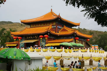 三亞南山寺位于三亞南山文化旅游區(qū)內(nèi),是一座仿盛唐風格、居山面海的大型寺院。南山寺是已故中國佛教協(xié)會會長趙樸初親臨選址,經(jīng)國家宗教局批準,于1995年11月11日奠基,1998年4月12日建成,F(xiàn)有仿唐建筑仁王殿、天王殿、鐘樓、轉(zhuǎn)輪藏、東西爬山廊、東西配殿、金堂等建筑群,總建筑面積5500㎡。整個建筑氣勢恢宏,為中國近五十年來新建的最大佛教道場,也是中國南部最大的寺院。自古名寺出高僧,南山寺的方丈是86歲高齡的高僧新成大和尚,監(jiān)院是中國佛教協(xié)會副會長明生法師。南山寺第二期工程已啟動。按照規(guī)劃設(shè)計,第二期工程遵循古代大型佛教寺院方正劃一、主次分明的特點,將主要建筑集在中軸線上,在兩側(cè)設(shè)置12個不同功能的四合院。二期工程完成后,整個南山寺東西寬188米,南北長416米,共8個臺階總高差49米,總建筑面積4萬平方米。