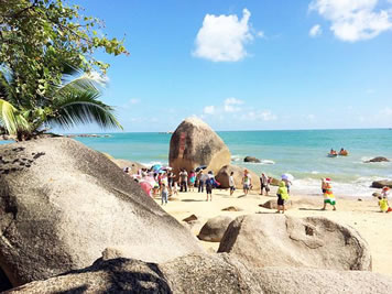 天涯海角游覽區(qū)位于海南省三亞市西南方向,位于三亞灣和紅塘灣之間的岬角上。總面積為16.4平方千米,其中陸域面積10.4平方千米,海域面積為6平方千米。因景區(qū)兩塊巨石分別刻有“天涯”、“海角”及郭沫若先生題寫的“天涯海角游覽區(qū)”而得名。