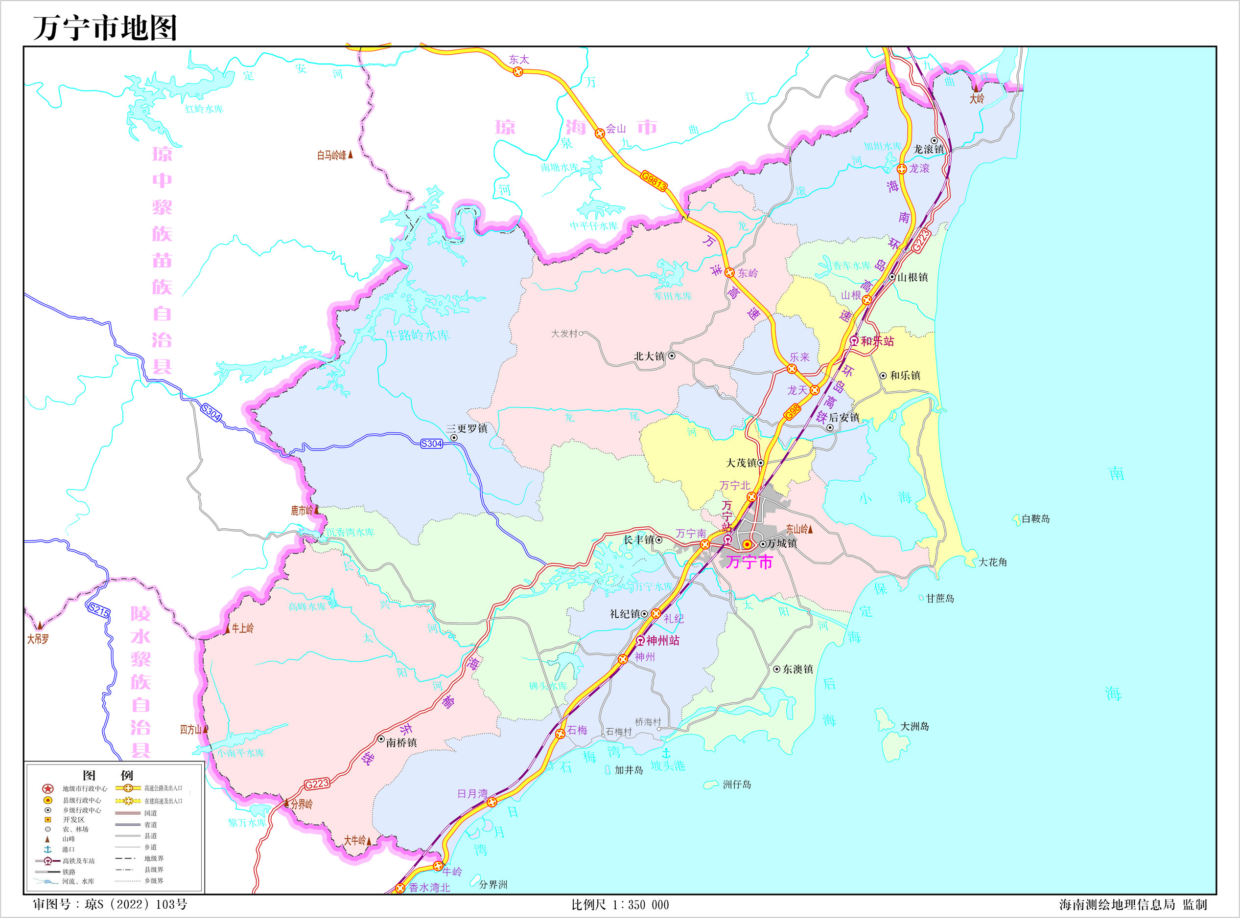 1996年8月5日,撤萬(wàn)寧縣,設(shè)萬(wàn)寧市,以原萬(wàn)寧縣的行政區(qū)域?yàn)槿f(wàn)寧市的行政區(qū)域。