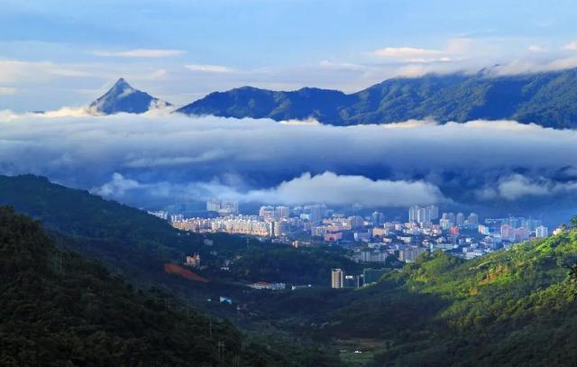 五指山市,猶如鑲嵌在五指山區(qū)綠濤上的一塊翡翠,街道兩旁菠蘿蜜、椰子樹和鳳凰樹紅綠相映,美麗的南圣河像條銀白色的飄帶繞著山城而過。此地冬暖夏涼,清晨涼風(fēng)習(xí)習(xí),霧鎖山城;午間云開霧散,陽光普照;午后烏云聚合,大雨傾盆,往往出現(xiàn)“東邊日出西邊雨”的奇異景觀,飄帶似的彩虹點綴天空。五指山還是黎苗傳統(tǒng)文化歌舞及工藝品創(chuàng)作和表演的主要基地,民族風(fēng)情原始、古樸、濃郁,別具特色的賓館、黎村苗寨而吸引了大量游人,是海南省每年“三月三”黎苗民族傳統(tǒng)節(jié)日慶典的主要場所。