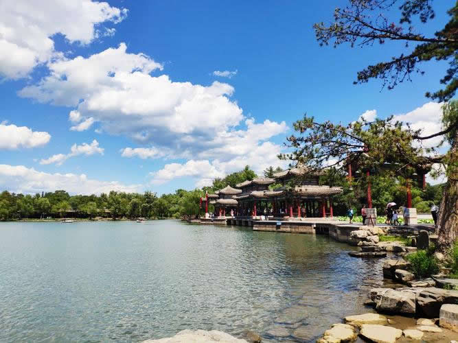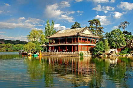 松鶴齋寓意“松鶴延年”,供太后居住,建于乾隆年間;萬壑松風(fēng)是清帝批閱奏章和讀書處,是宮殿區(qū)與湖區(qū)的過渡建筑,造型與頤和園的諧趣園類似;東宮在宮殿區(qū)最東面,原為清帝舉行慶宴大典的場所,后毀于戰(zhàn)火。