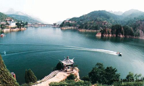 太行三峽—京娘湖 東太行山武安市京娘湖,據(jù)馮夢(mèng)龍編《警世通言》記載,宋太祖趙匡胤千里送京娘曾路宿于此山中。京娘是山西永濟(jì)人,年方十七歲, 隨父母去曲陽(yáng)燒香還愿遭劫,幸遇趙匡胤拔刀相救,千里護(hù)送,京娘感恩不盡,欲以終身相托。然而趙曰:“賢妹非是俺膠注鼓瑟,本為義氣千里相送,今若就私情與那個(gè)響馬何異?況施恩圖報(bào)非君子所為 。”京娘道:“恩兄高見,妾今生不能補(bǔ)報(bào)大德,死當(dāng)銜環(huán)結(jié)草。 ”于是京娘投湖自盡,(后被追封為貞義夫人)京娘湖亦由此得名。 湖面呈倒“人”字型,分東西兩支,水面2445畝,水深20-50米。中間 山島建有“山頂公園”清山綠水與藍(lán)天白云相互輝映,薈萃人典故, 使此地有“太行三峽”之美稱,尤其是巖壁上當(dāng)年趙匡胤“云崖寄志 ”的題詞手跡“欲出未來光辣撻,千山萬水如火發(fā)。須臾走向天上來 ,趕卻殘星趕卻月”。及其它歷史傳說,使景區(qū)更加神秘誘人。這里 層巒疊嶂,群峰竟秀,波光粼粼,林林茂盛。夏季炎熱之時(shí),清爽宜 人,為避暑勝地。
