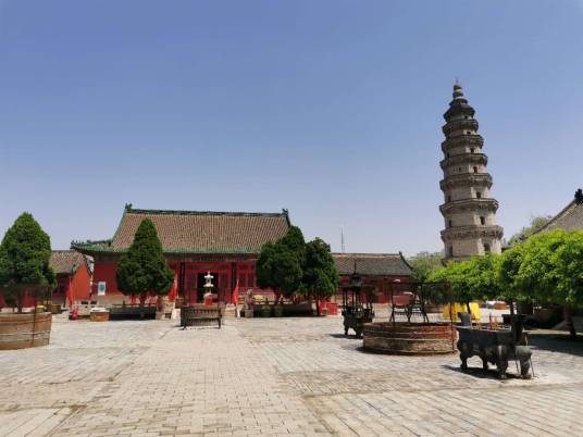 寶云寺內(nèi)有一塔,高36.5米,塔體為八面棱錐體磚木結構,自四層以上四面有門,塔的各層建筑風格各異,或成鴛鴦斗拱,或成梅花斗拱,雄渾古樸,氣勢磅礴。若登塔頂,需有一定的勇氣,因為每登一層都要繞塔沿半圈,找到另一側的入口。寶云塔原名擎天塔,位于衡水市區(qū)西南的舊城村東。該塔原在寶云寺內(nèi),因此稱寶云塔。