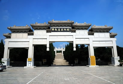 清崇陵位于泰陵的東南面約4公里的金龍峪,是我國現(xiàn)存帝陵中最后的一座。崇陵的建筑物數(shù)量與規(guī)模,完全依照同治的惠陵。建筑工巧,陵園儀樹中有罕見的羅漢松和銀松。地宮中合葬著光緒帝和隆;屎蟆