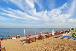 廣場緊靠沙灘浴場,浴場具有沙細、灘緩、水清、潮平四大特點,自然環(huán)境優(yōu)美,游客在這里可以體驗海水浴、熱沙浴、也可以去進行沙灘排球、沙灘足球、沙灘拔河、拓展訓(xùn)練等游樂活動。到了晚上,在海螺廣場擇一位置,看海上的夕陽如何消失,看海上明月共潮生。支幾頂帳篷,和三五好友談天說地、參加篝火晚會,品嘗烤全羊等美味佳肴,最后和大海一起等待日出,感受太陽的心跳。