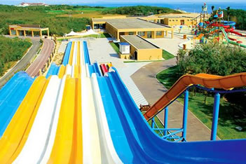 水樂園2期:巨蟒滑梯、封閉螺旋滑梯、急速滑道、螺旋皮筏滑梯、時光隧道、沖天回環(huán)滑道、炮筒滑梯、漂流河。