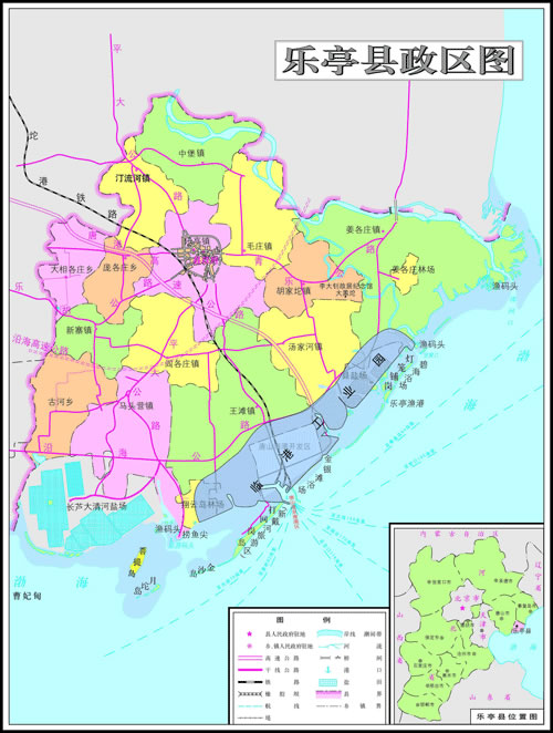 樂亭縣位于河北省唐山市東南部,北仰燕山,南望齊魯,東連秦榆,西眺京津,地處環(huán)渤海灣中心地帶和京津唐秦四市環(huán)抱之中。地理座標(biāo)位置為北緯39°05′46″--39°34′38″,東經(jīng)118°40′48″――119°18′37″。距北京246公里、天津188公里、唐山70公里、秦皇島110公里。