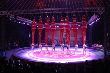 以展示集現(xiàn)代聲、光、電及各種高科技技術于一體的大型綜藝型雜技晚會,建筑面積5529平方米,突出反映中華民族自遠古黃帝時代至現(xiàn)代數千年的雜技發(fā)展史,有黃帝戰(zhàn)蚩尤、魏晉椽樟、水轉百戲、南園廟會等十幾個場景。