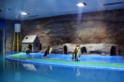 新澳海底世界搶食的企鵝身著燕尾服、風(fēng)度翩翩、憨態(tài)可掬的紳士——企鵝,深受人們的喜愛,多少人向往一睹風(fēng)彩。該館引進的企鵝大家族--洪氏環(huán)企鵝,是來自于秘魯沿岸島嶼上的溫帶企鵝,F(xiàn)地球上僅存兩萬多只,因此洪氏環(huán)企鵝被列為世界上瀕臨滅絕、受國際保護的動物之一,棲息地的毀滅及人類的活動正嚴(yán)重威脅著這種企鵝的生存,為了使動物和人類的共同家園更加 美好,希望我們大家貢獻出自己的力量,保護我們的生存空間。