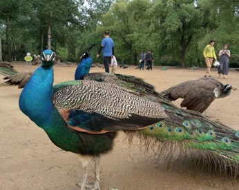 世界瀕危野生動物綠孔雀在秦皇島野生動物園不斷繁衍生息,已從1949年的20余只繁育到80只,成為中國最大的綠孔雀群。綠孔雀俗名:孔雀、越鳥、爪哇綠孔雀;體型最大的雉科鳥類,體重7000-8000克。雄鳥全長約140厘米,雌鳥約100厘米。雄鳥體羽翠藍綠色,下背閃紫銅色光澤。頭頂有一簇直立的羽冠。尾上覆羽延伸成尾屏,可達1米以上,約有百余枚,并有紫、黃、藍、綠多種顏色構(gòu)成的眼狀斑紋,形成孔雀特有的尾屏。開屏?xí)r顯得異常艷麗、光彩奪目。雄鳥尾特長,頭部冠羽豎起,頸、上背及胸部具綠色光澤,尾上覆羽特長并具閃亮眼斑而成尾屏。雌鳥羽色以褐色為主,帶綠色輝光。無尾屏。
