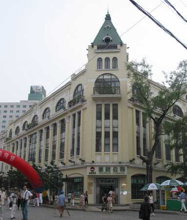 建于1909年,原為松浦洋行,是我市最大的巴洛克建筑代表作品,也是中央大街的標致型建筑。其外觀華麗,造型生動,裝飾復(fù)雜,輪廓豐富。深紅色的閣樓、孟沙式的屋頂和形體多變的半圓穹窿創(chuàng)造了優(yōu)美的天際線,是市Ⅰ類保護建筑。