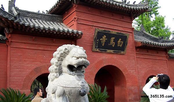 白馬寺:位于洛陽市東郊十二公里處的白馬寺村北側(cè)。始建于東漢明帝永平十一年(公元六十八年),是佛教傳入中國后由封建官府營建的第一痤寺院,距今已有近兩千年歷史。白馬寺名稱之由來,諸說不一,據(jù)《洛京白馬寺祖庭記》碑和《巍書,釋老志》.《洛陽伽蘭記》等記載,漢明帝夜夢金人,頂有白光.飛行殿庭。大臣傅轂說;西方有神.名曰佛,“形如階下所焚”。帝派蔡喑、秦景出使酉域拜求佛法,獲佛經(jīng),佛法并拜請攝摩騰、竺法蘭二位佛學(xué)大法師,來到京都洛陽,最初安排在“鴻臚寺”,暫住譯經(jīng)傳教。因譯經(jīng)傳教成績卓著,明帝赦建了中國第一座寺院,即取“鴻臚寺”之“寺”字,又因白馬馱經(jīng)來而取“白馬”冠于“寺”前,稱“白馬寺”。白馬寺從漢明帝創(chuàng)寺至今,在近兩千年的漫長歲月里,曾飽經(jīng)滄桑,數(shù)廢屢興。新中國成立后,黨和人民政府先后于1952年、1954年、1959年、1973年多次拔?顚υ撍逻M(jìn)行修葺,1961年白馬寺被列為全國重點(diǎn)文物保護(hù)單位,F(xiàn)在白馬寺不但是中外游客游覽場所,而且也是中外佛教信徒瞻仰朝拜的圣地。