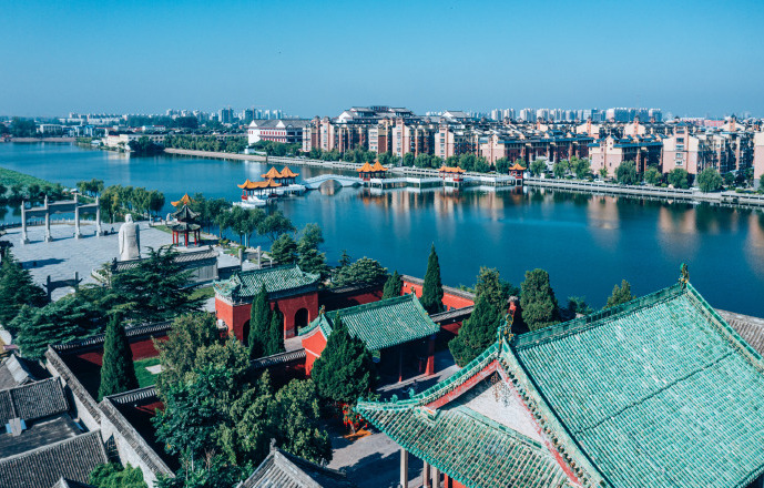龍湖因伏羲氏定都宛丘,以龍紀(jì)官,號(hào)曰龍師而得名,水域面積近萬畝,是國(guó)家濕地公園、國(guó)家水利風(fēng)景區(qū),也是中國(guó)面積最大的內(nèi)陸環(huán)城湖,被譽(yù)為“中原明珠”、“內(nèi)陸奇觀”。