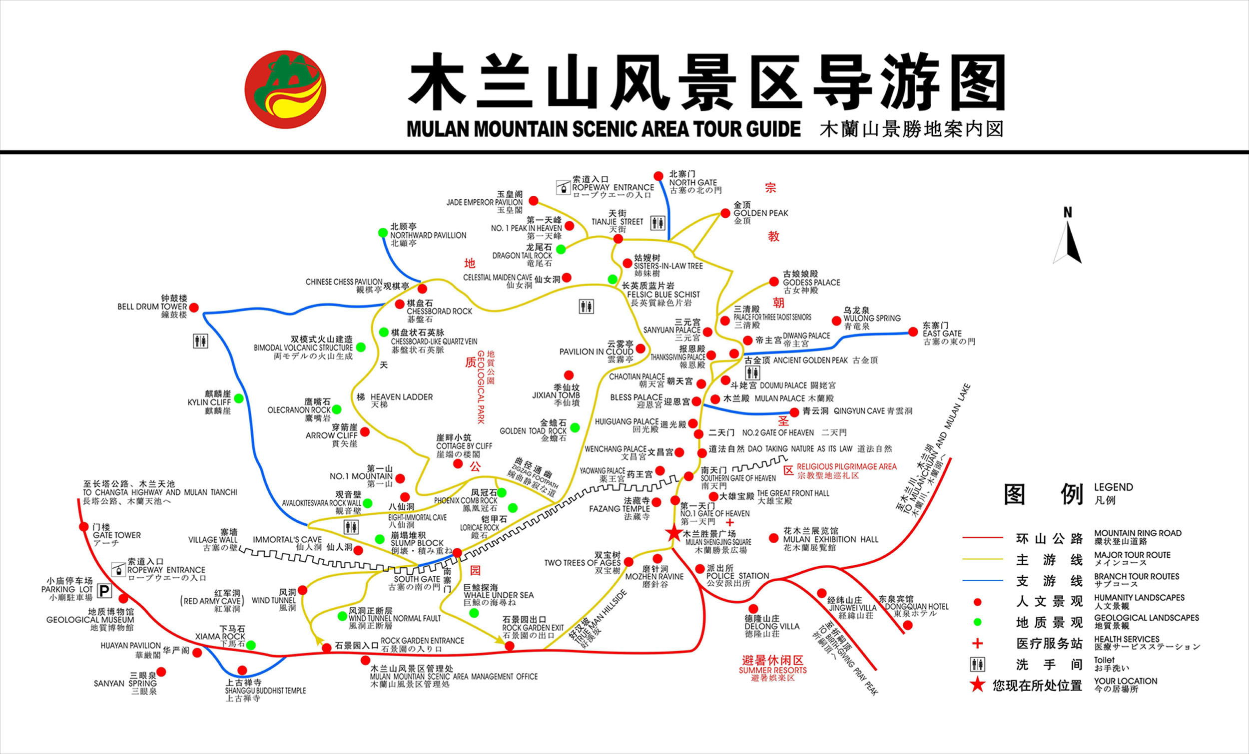木蘭山景區(qū)是千年香火圣地,其宗教活動始于隋唐、盛于明清,佛道兩教共處一山,每年海內(nèi)外香客游人絡(luò)繹不絕。已被列為國家重要景點(diǎn)之一,進(jìn)入全國假日旅游信息預(yù)報(bào)系統(tǒng)。自前向后有南天門、二天門、回光殿、木蘭將軍墳、木蘭殿、斗姥宮、朝天門、報(bào)恩殿、帝王宮、三清殿、娘娘殿、玉皇閣、金頂?shù)染包c(diǎn)。木蘭山作為國家地質(zhì)公園,廣泛分布著有7億5千萬年歷史的藍(lán)片巖。 景區(qū)常年舉辦國際A級賽事全國山地戶外挑戰(zhàn)賽和木蘭廟會、木蘭山登山節(jié)。整個(gè)風(fēng)景區(qū)分為古寨區(qū)、石景區(qū)、花苑區(qū)、山莊區(qū)四區(qū)。
