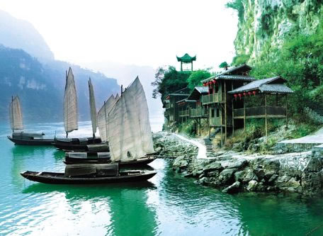 三峽人家,依山傍水,風(fēng)情如畫:傳統(tǒng)的三峽吊腳樓點(diǎn)綴于山水之間,久違的古帆船、烏篷船安靜地泊在三峽人家門前,溪邊少女揮著棒槌在清洗衣服,江面上悠然的漁家在撒網(wǎng)打魚……千百年來流傳不衰的各種習(xí)俗風(fēng)情體現(xiàn)著峽江人民的質(zhì)樸好客。