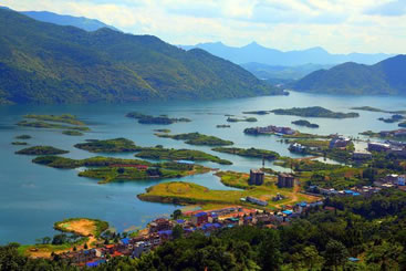 它遠(yuǎn)離城市,湖內(nèi)碧波萬傾,水中仙島競秀,兩岸青山峽嶼,山中溶洞幽深,是不可多得的世外桃源。