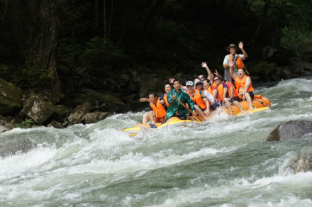 被譽為“中國生態(tài)第一漂”,位于東江湖最南端的黃草鎮(zhèn)境內(nèi),全程28千米。從龍王廟起漂點到燕子排終漂點整個落差75米,急灘108個,漂流河道兩巖有保存比較完好的原始次森林,奇巖怪石林立,古樹遮天蔽日,老藤攀崖附壁,飛鳥跳躍枝頭。東江漂流以其灘多浪急落差大、水碧石怪魚奇怪、兩岸森林植被佳而 聞名,是國內(nèi)目前最具探險的融歷險、探幽、獵奇、拾趣為一體的漂流去處。