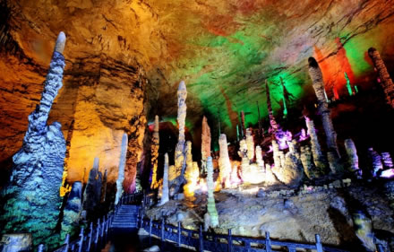 黃龍洞位于湖南省張家界市核心景區(qū)武陵源風(fēng)景名勝區(qū)內(nèi),是世界自然遺產(chǎn)、世界地質(zhì)公園武陵源的有機組成部分,屬典型的喀斯特巖溶地貌,以其龐大的立體結(jié)構(gòu)洞穴空間、豐富的溶洞景觀、水陸兼?zhèn)涞挠斡[觀光線路獨步天下,被列為國際旅游洞穴會員、全國35個王牌景點之一、中國首批AAAA級旅游景區(qū)、中國旅游首批知名品牌、中國馳名商標(biāo)、湖南省最佳旅游景區(qū)、張家界旅游精品線之一,享有“世界溶洞奇觀”、“世界溶洞全能冠軍”之美譽,2005年被評選為“中國最美旅游溶洞”。