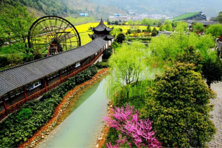 水車悠悠的翠谷,土家文化的寶庫。數(shù)十架大大小小、各式各樣的水車,星羅棋布地散落在清澈的溪澗里,在悠悠潺潺的溪流中吱吱啞啞地吟唱著古老的歌謠。使游人在驚嘆的同時仿佛進入一個古老的世界,因此喚醒回歸自然之幽情。