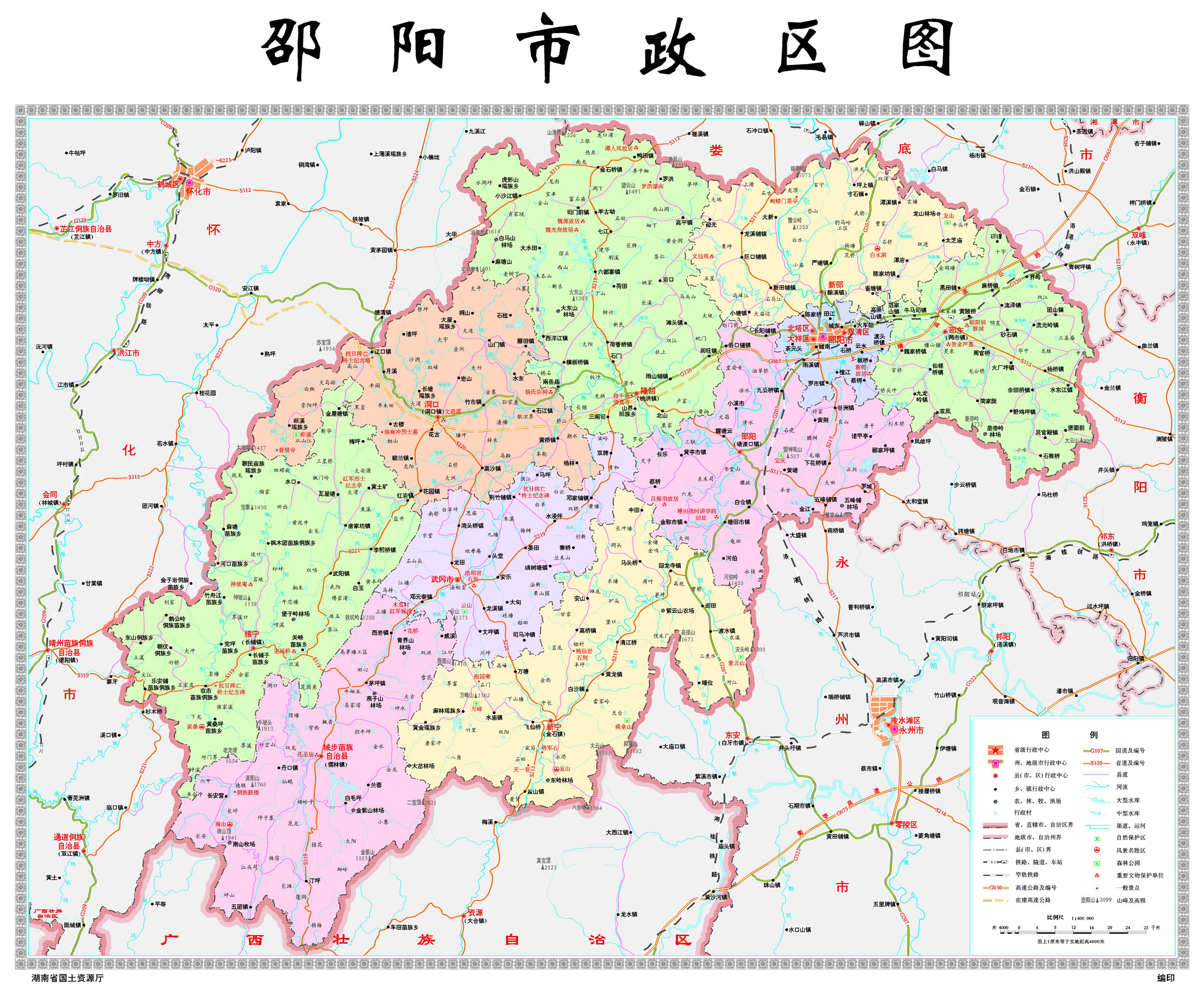 邵陽市轄3個(gè)區(qū)、6個(gè)縣、1個(gè)自治縣,代管2個(gè)縣級(jí)市;