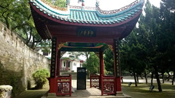 懷甫亭位于岳陽(yáng)樓下臨湖平臺(tái),占地40平方米,高7米,四周環(huán)以欄桿,上部為純木結(jié)構(gòu),亭中豎有石碑一方,正面刻著杜甫的畫(huà)像和《登岳陽(yáng)樓》詩(shī),背面刻有其生平事跡,北面檐下懸掛有樟木匾額,上書(shū)"懷甫亭"三個(gè)字,是岳陽(yáng)人民紀(jì)念詩(shī)圣杜甫的地方。