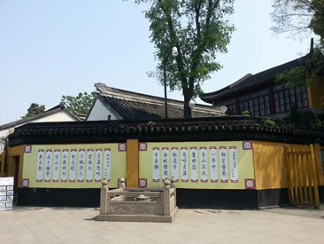 藏經(jīng)樓系原來(lái)收藏陳放經(jīng)書(shū)處,面闊3間,寬9.8米;進(jìn)深9.2米。藏經(jīng)樓樓屋頂有《西游記》中孫悟空、唐僧、豬八戒、沙悟凈的雕塑像。一樓內(nèi)墻壁上嵌有《金剛般若波羅蜜經(jīng)》的經(jīng)文(系禪宗)。還嵌有董其昌(1555一1636年,上海松江人,明代杰出的書(shū)畫(huà)家)等人的書(shū)法碑刻。鐘樓為二層,八角。樓下石碑為重修寒山寺時(shí)所立,正面碑文為程德全所撰,碑的背面刻有重修寒山寺時(shí)募捐者的名字和金錢(qián)額。傳說(shuō)張繼詩(shī)中的鐘就是懸于原來(lái)這里的鐘樓樓上。鐘樓建筑和這里的鐘都不是唐代的了,這口鐘是清代光緒三十二年(1906年)重鑄的,距今有100多年的歷史。月落烏啼霜滿(mǎn)天,江楓漁火對(duì)愁眠。姑蘇城外寒山寺,夜半鐘聲到客船。”這是唐代詩(shī)人張繼寫(xiě)的。傳說(shuō)詩(shī)人張繼去唐時(shí)首都長(zhǎng)安(今西安)赴考后,落第返回時(shí),途經(jīng)寒山寺,夜泊于楓橋附近的客船中,夜里難以成眠,聽(tīng)到寒山寺傳來(lái)的鐘聲,有感而作。《楓橋夜泊》詩(shī)在日本幾乎家喻戶(hù)曉。日本的小學(xué)生把這首詩(shī)作為課文來(lái)講授和背誦。