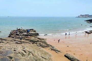 環(huán)繞連島的是湛藍的大海,穿行于青山林陰之下,舉首遠眺蒼茫大海,平日勞頓身心豁然舒暢,愉悅情懷由衷而生。在連島大沙灣、蘇馬灣各有一處天然海濱浴場,那里浪緩灘平,水清沙細,國際標(biāo)準(zhǔn)海水游泳水溫期長達80天,是踏浪戲海的理想之地。久居城市的人,在鋼筋和混凝土的叢林中,飽受喧囂之鬧俗欲之累,來到連島蘇馬灣,傾聽萬年如一的潮聲濤語,山海的永恒博大,讓郁積于胸的煩情愁緒頃刻間遁于無形,甚至將自我都融入了蒼茫的海天之中。