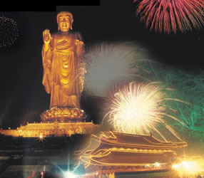 靈山大佛于 1997年11月15日落成開光,海內(nèi)外高僧大德及各地信眾千萬余人親臨現(xiàn)場。是日慈云瑞靄籠罩大佛金身,至開光儀式舉行,祥云飄升,大霧竟奇跡般地散去,預示法輪常轉(zhuǎn)佛光昔照。