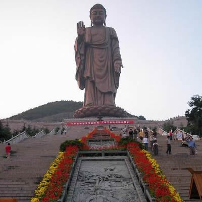 矗立在小靈山南麓的靈山大佛,包括蓮花座在內(nèi)通高為八十八米,相當于一幢三十馀層樓房的高度,比“山是一尊佛,佛是一座山”的四川樂山大佛還要高出十七米,是迄今為止我國最高的巨型佛像。如果加上三層座基,總