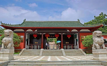 位于五華頂西北山坡上,林木茂盛,種類繁多,清明時(shí)節(jié),連翹盛 開,用連翹搭建的八卦隧道,金光閃閃,滿宮盡帶黃金甲。中部建有鵝暖石八卦圖、琉璃瓦八卦亭。園林景觀按照八卦迷宮原理設(shè)計(jì)建造,故名八卦迷宮。