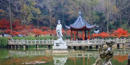 紅葉谷位于御花園和鳳翔峰西南山腰的交界處,由于這里長年無人涉及,加上山水的沖刷,于是巖石裸露處盡顯崖溶奇石景觀,其余則為茂密的叢林和濕地,特有的氣候環(huán)境,使這里奇石嶙峋、古楓矗立、古藤纏繞。該景點的建設(shè)充分考慮倒地貌、水體、植物、設(shè)施等的和諧搭配,注重棲霞山的生態(tài)功能的修復(fù),不斷美化、優(yōu)化、彩化環(huán)境,并引水造池,改善該區(qū)域的生態(tài)環(huán)境。紅葉谷占地約5萬平方米,景區(qū)自然風(fēng)貌優(yōu)美,以奇石、紅葉為特點,是集山、石、水、林、亭為一體新的紅葉觀賞區(qū)。